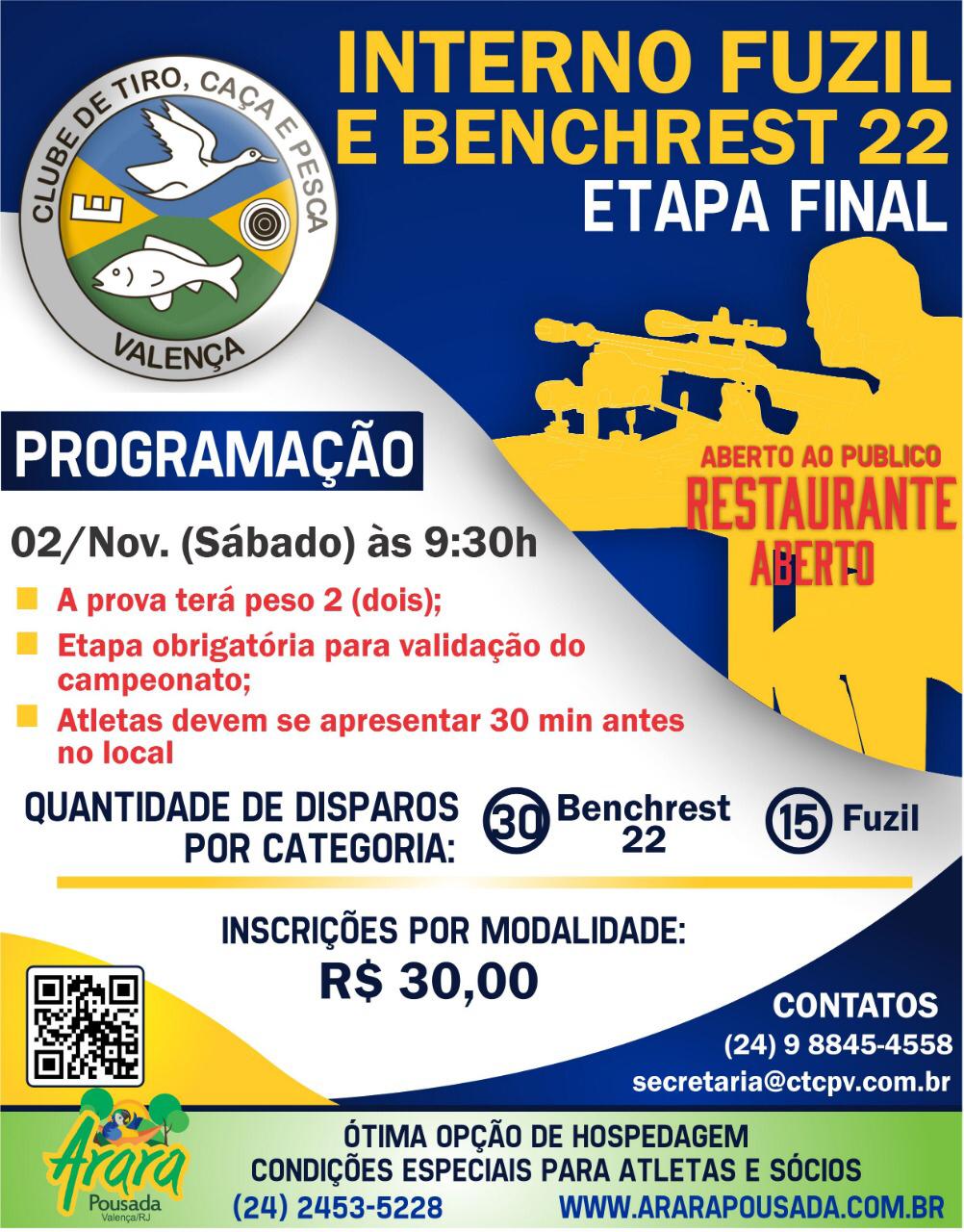 Dia 2 de Novembro, acontecerá a ETAPA FINAL DO CAMPEONATO INTERNO FUZIL E BENCHREST 22.